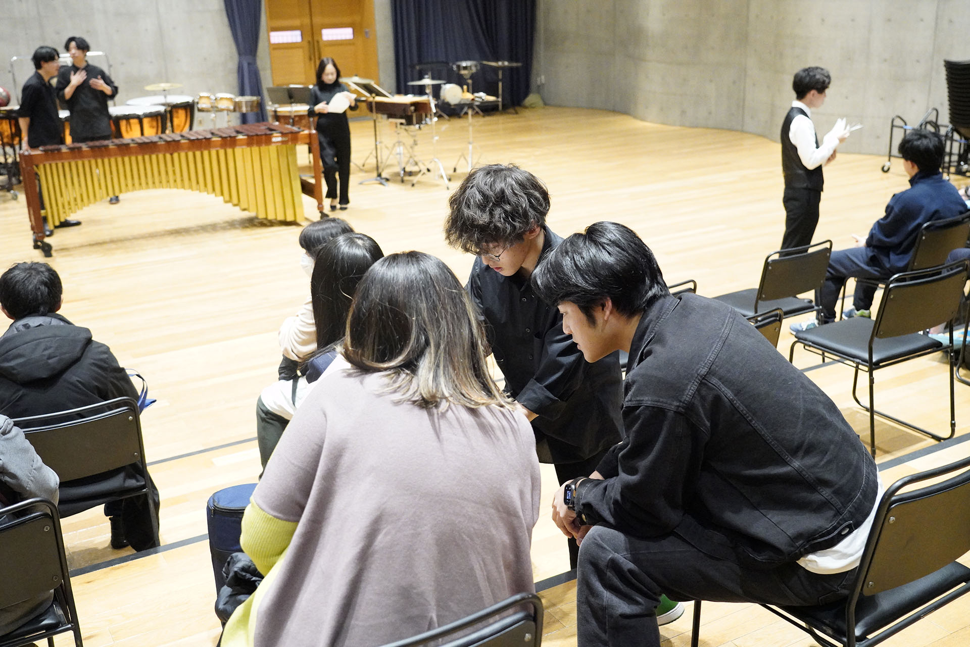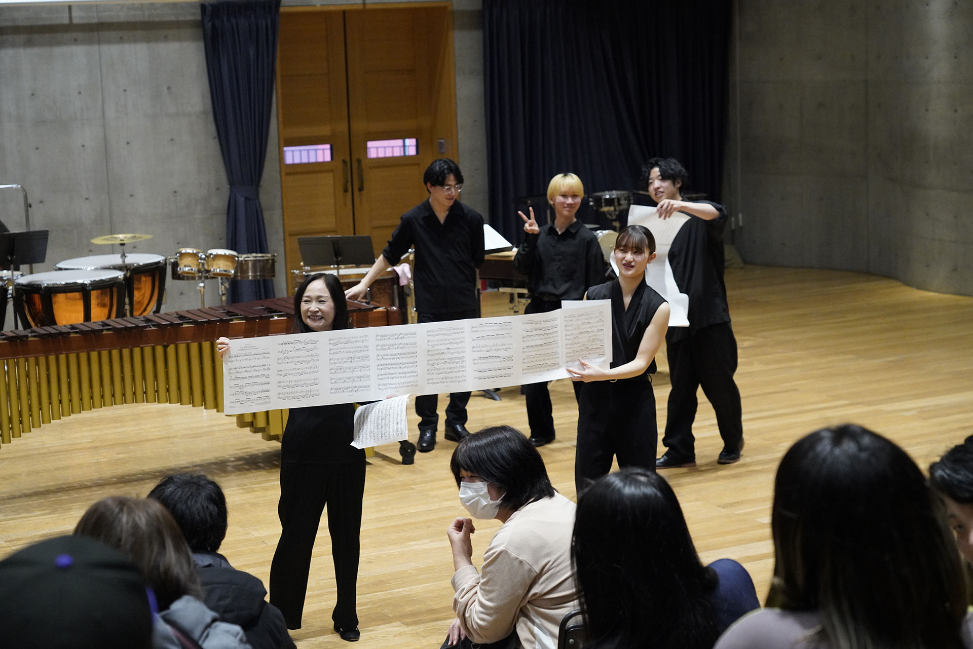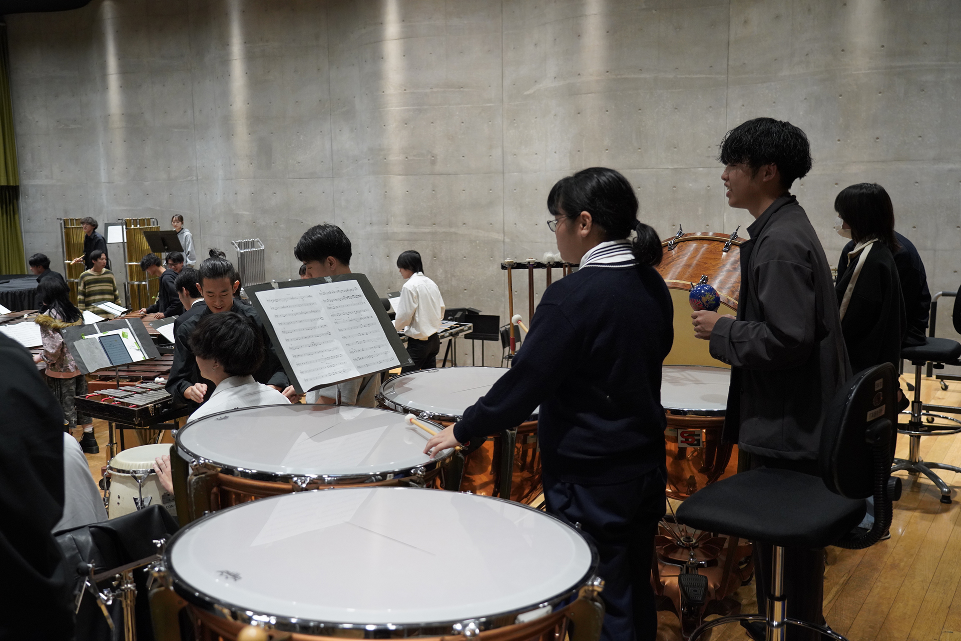 洗足 打楽器コースのテーマソング「UKOZNES(ウコズネス)」の演奏を目の前で聞いて、ここでしか経験できない、打楽器オーケストラの様々な音色を奏でる楽しさを、高校生の皆さんに体験していただきました!