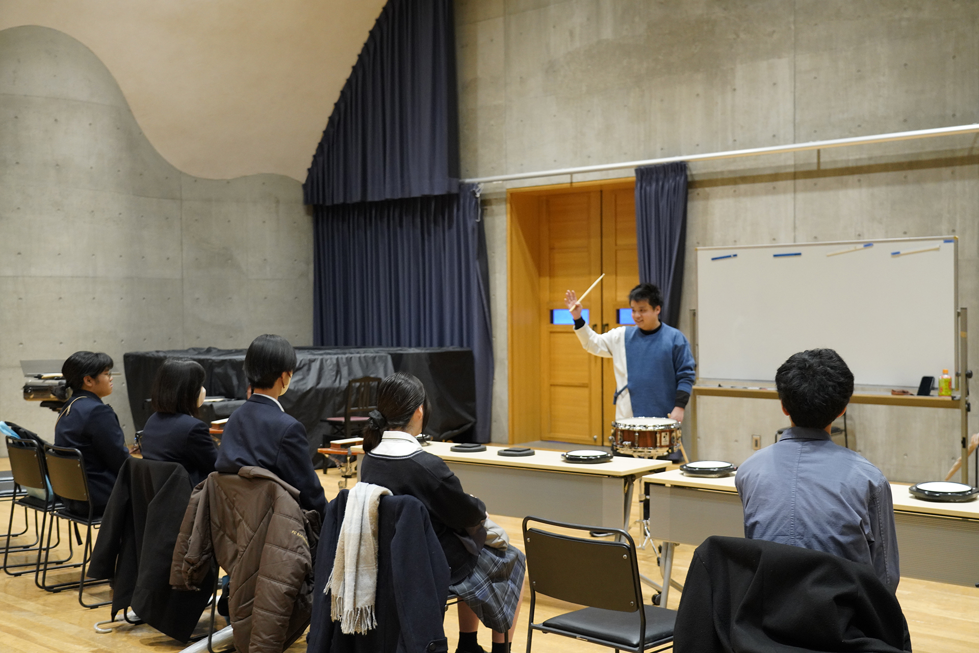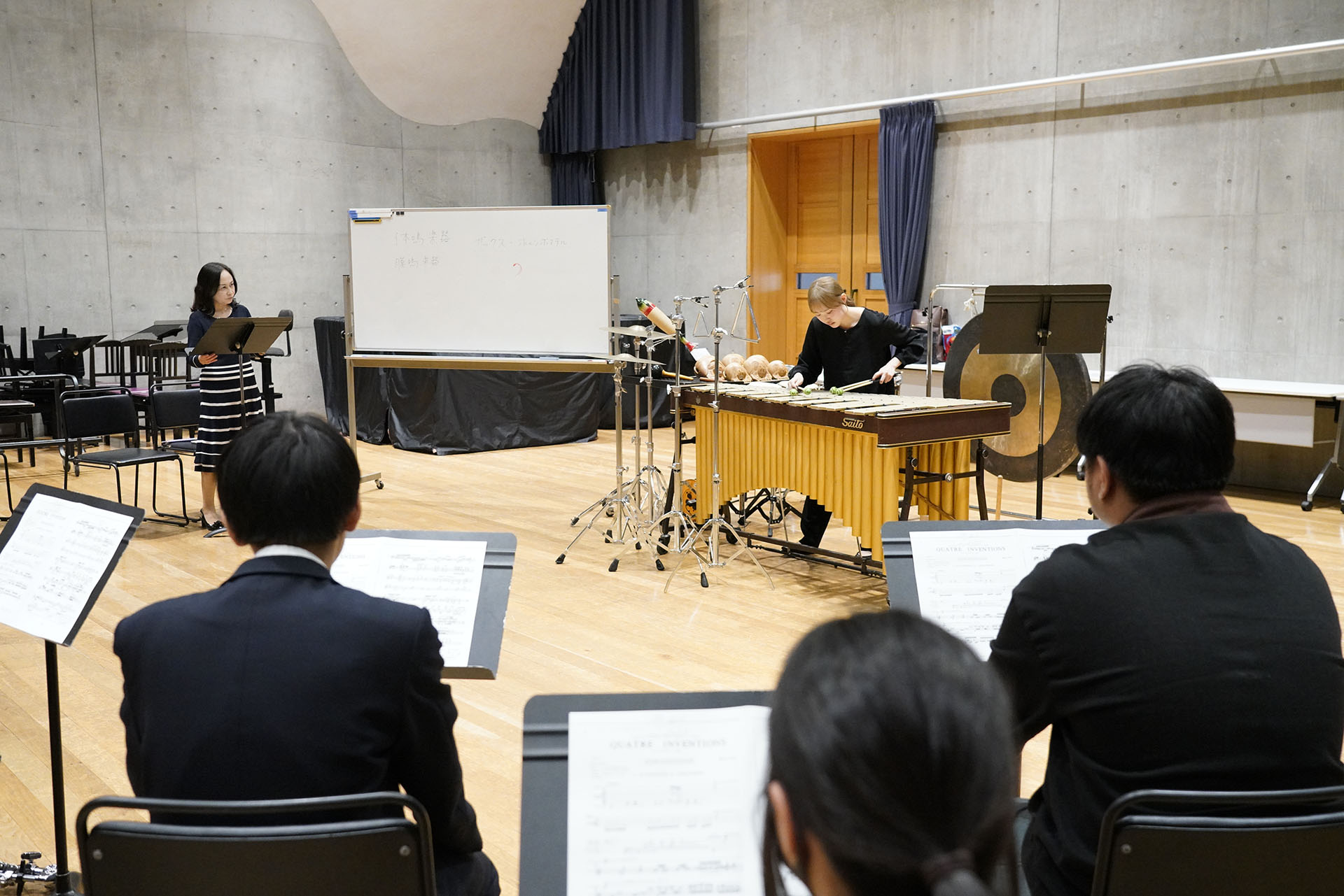 小太鼓やマリンバ、そしてアンサンブルを例に、豊かな音楽表現に必要なテクニックをレクチャーいたしました!