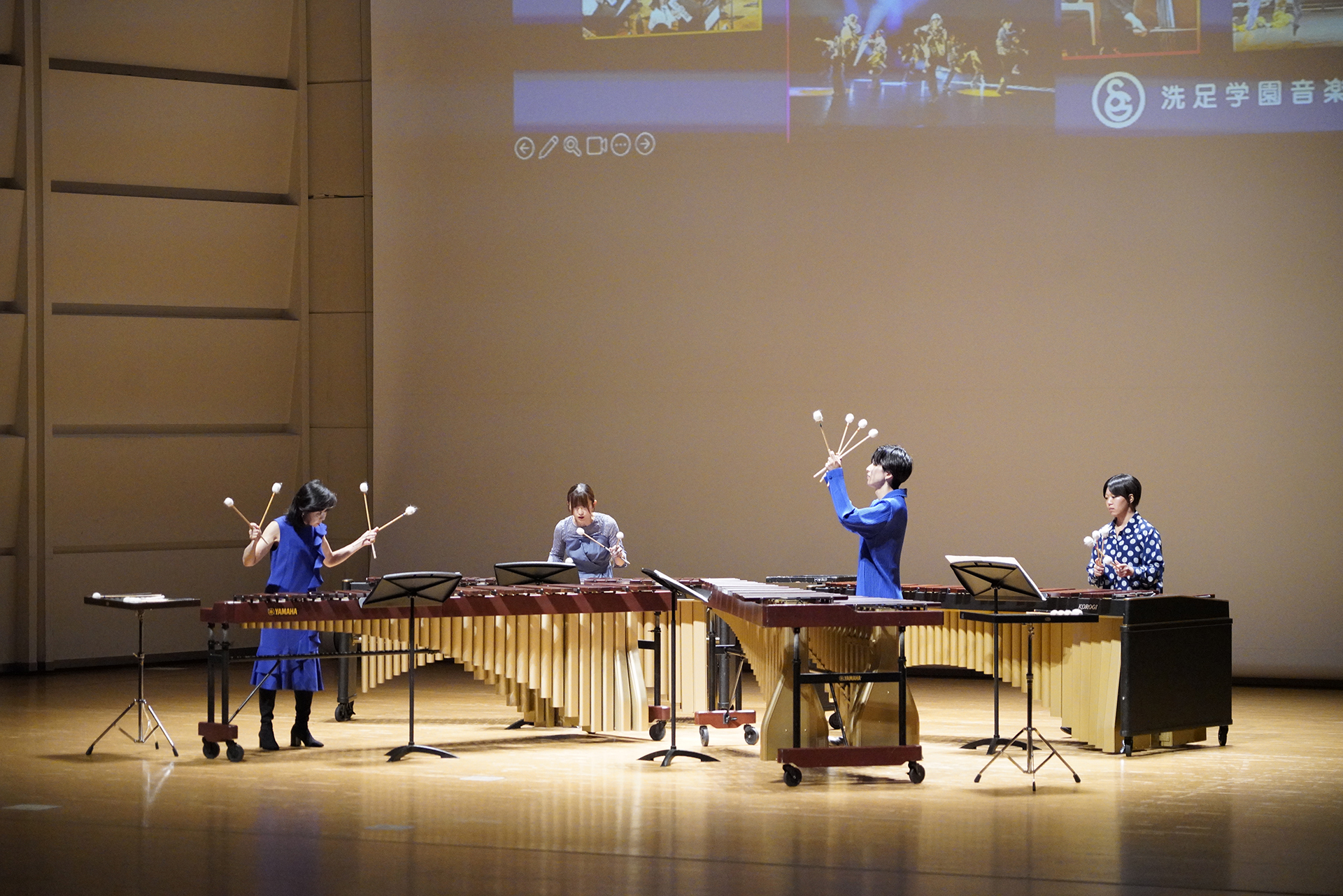 打楽器コースによる、マリンバ&マルチパーカッションの演奏でお迎えしました。